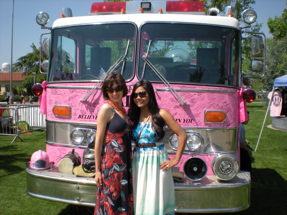 Gals in front of a pink fire truck 😉